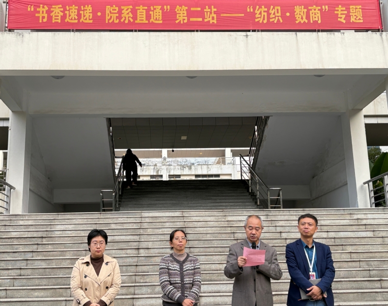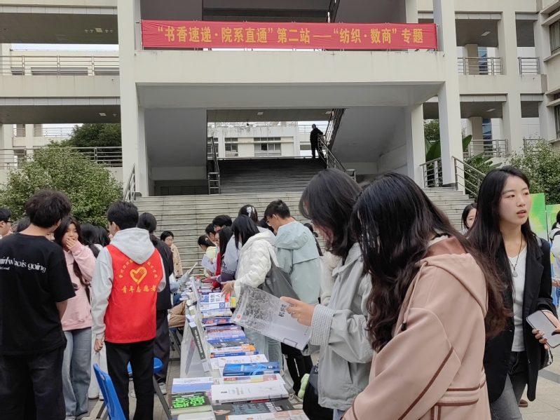 作为深受师生欢迎的品牌服务,“书香速递·院系直通”系列活动持续深入推进。继首站活动成功举办后,11月12日下午,第二站活动以“纺织·数商”为主题,在5号楼广场顺利举行。本次活动旨在将丰富的图书资源精准送达院系,为师生提供“现场借阅+新书选购+还书”的一站式服务,进一步营造校园浓厚的阅读氛围。数字商贸学院党总支书记林洁、智能纺织与材料学院党总支副书记史京军、图书馆馆长马晓明出席活动,活动由图书馆倪聆主持。