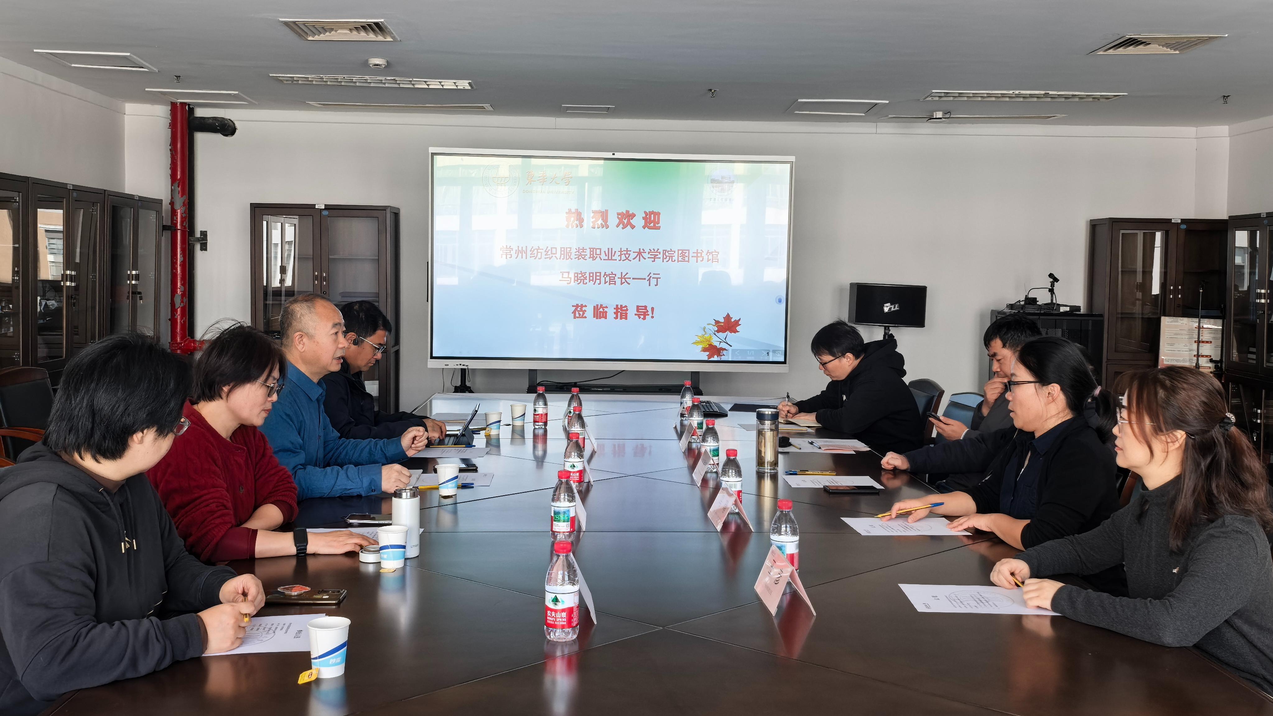 东华大学图书馆馆长方建安、特色与数字化工程部主任冯晴及相关部门的负责人对常纺院图书馆调研团队进行了热情接待并座谈交流。随后,调研团队重点考察了其依托学科特色打造的“经纬文库”、“东华文库”等专业资源库,深入学习了“学科馆员”深度嵌入教学科研的服务机制,并就纺织服装类特色资源的数字化建设与服务模式进行了充分交流。