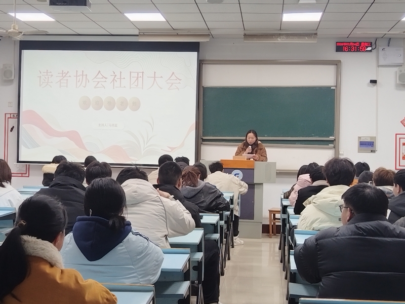 为进一步加强学生社团建设,提升专业指导水平,推动校园阅读推广工作深入开展,读者协会于2026年3月4日下午在5114教室召开社团大会。通识教育学部副教授、公共英语教研室主任徐学敏老师作为新增指导老师正式加入协会,图书馆馆长马晓明、指导老师倪聆及全体会员共同参会。大会由商英2532班的马祥蕊同学主持。